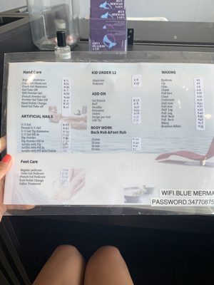 Blue Mermaid Nail Salon offers amenities such as Wheelchair Accessible, Free Wi-Fi, Gender-Neutral Restrooms, Accepts Credit Cards, Accepts Contactless Payments, ensuring a comfortable and convenient experience for clients.